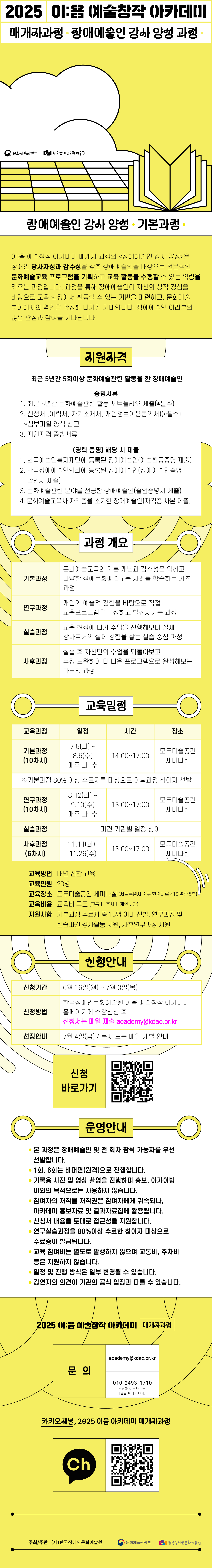 [한국장애인문화예술원] 장애예술인 강사 양성 과정 참여자 모집 (6.16 - 7.3.)