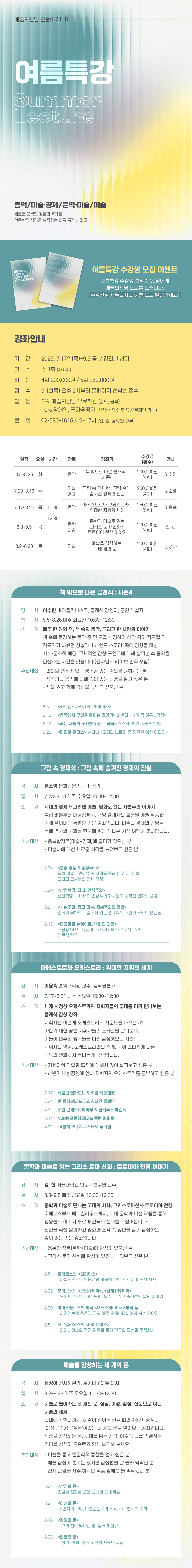 예술의전당 인문아카데미 여름특강 수강생 모집