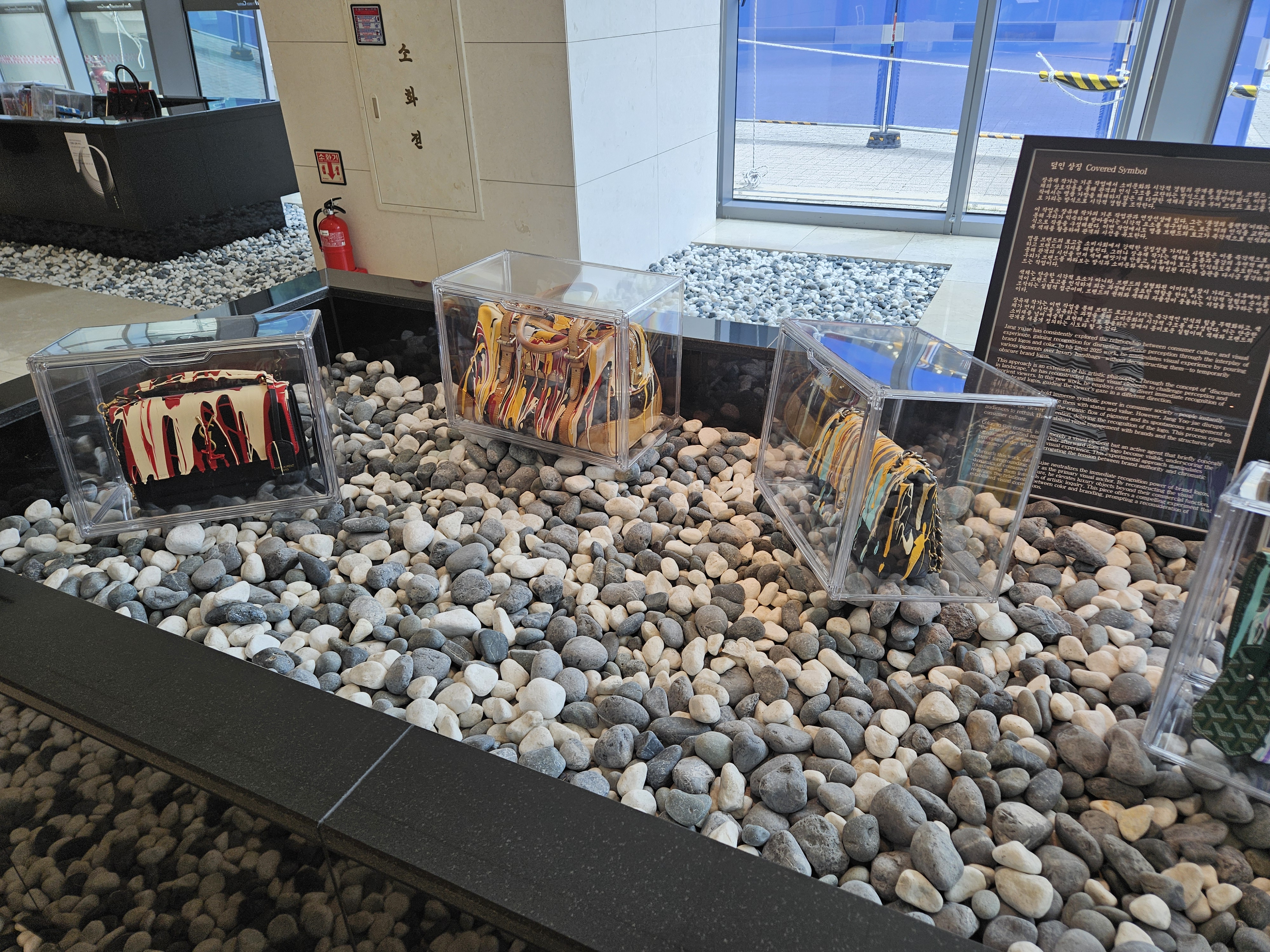 색채가 브랜드 로고를 덮어버리고, 관객이 색에 먼저 시선을 빼앗긴 후 로고를 인식하는 과정은 우리가 ‘명품’이라는 개념을 어떻게 정의하는지에 대한 근본적인 질문을 던진다. 이는 우리가 브랜드를 바라보는 방식과 소비문화 속에서 형성된 시각적 습관을 다시금 생각하게 만드는 실험적 접근이다.