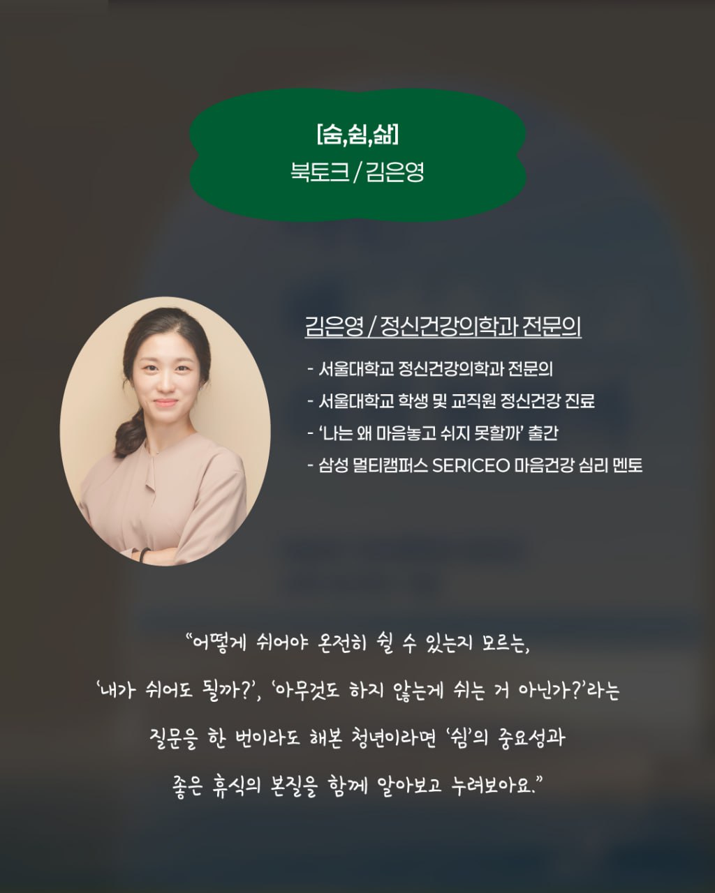 [용산청년지음] 숨쉼삶 - 북토크 강연 참여자 모집('나는 왜 마음 놓고 쉬지 못할까' 작가)