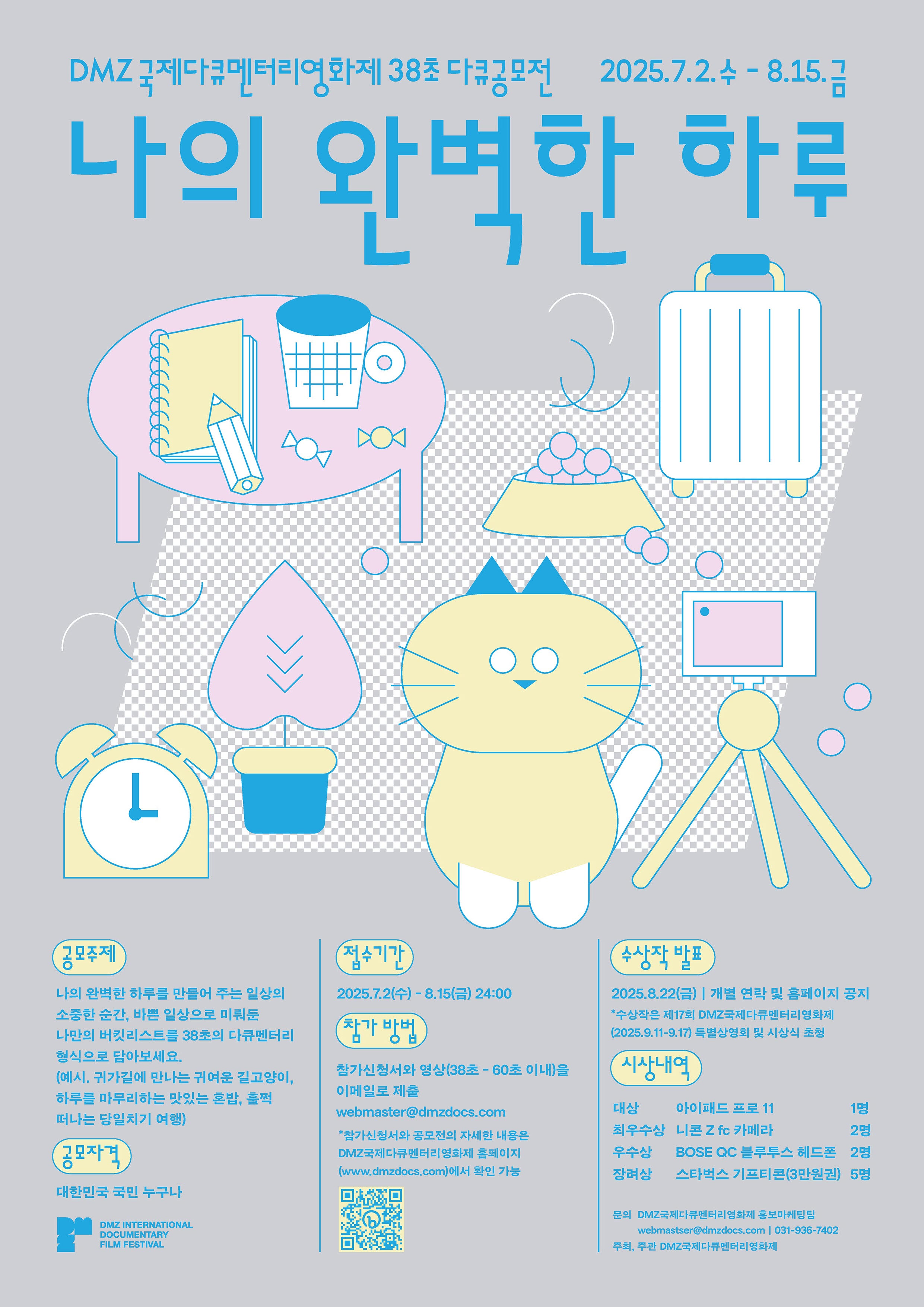 DMZ국제다큐멘터리영화제 38초 다큐공모전 '나의 완벽한 하루' 영상 공모 (~8/15)