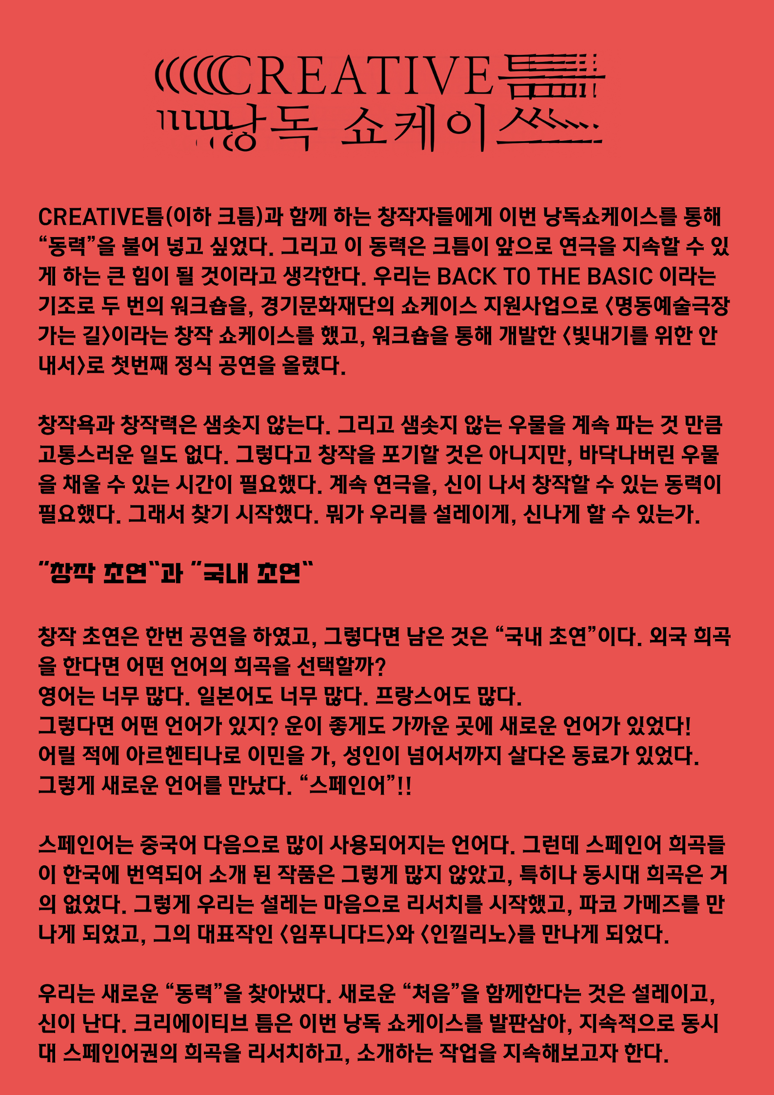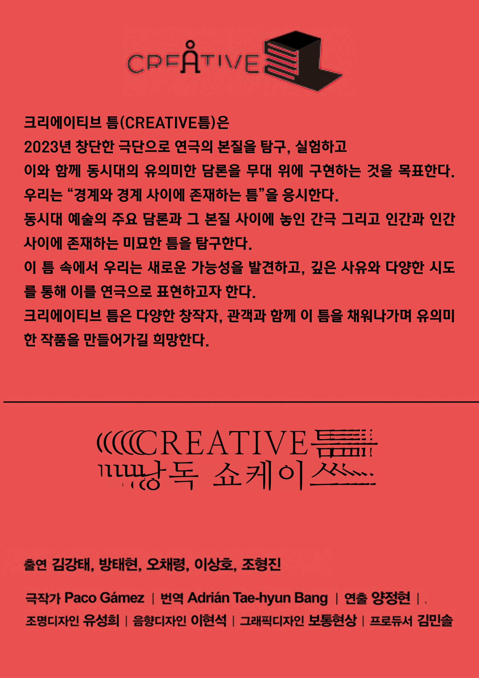 CREATIVE틈 낭독 쇼케이스 _ 스페인 극작가 Paco Gámez