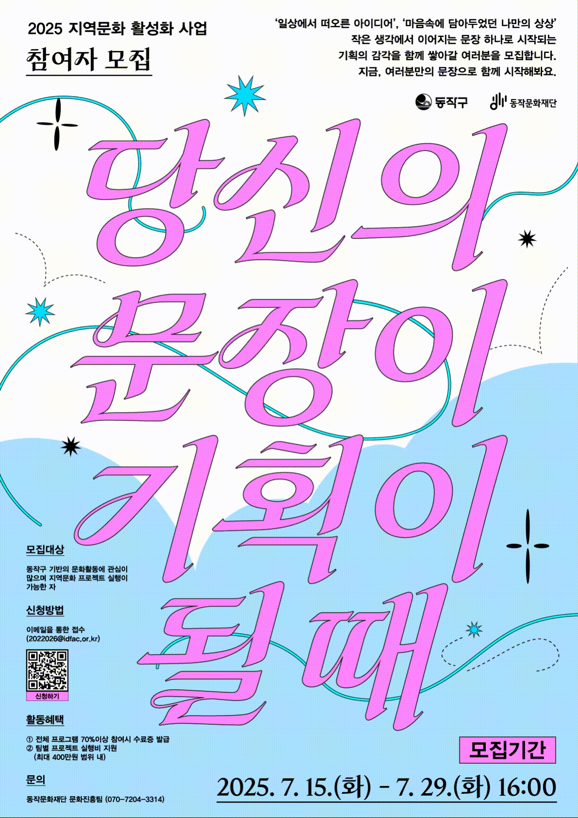 [동작문화재단] 2025 지역문화 활성화 사업 <당신의 문장이 기획이 될 때> 참여자 모집