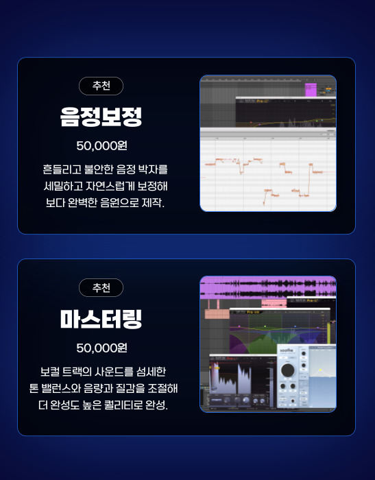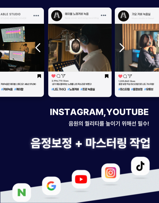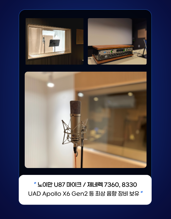 하이엔드 마이크와 음향 장비로 녹음해보세요.