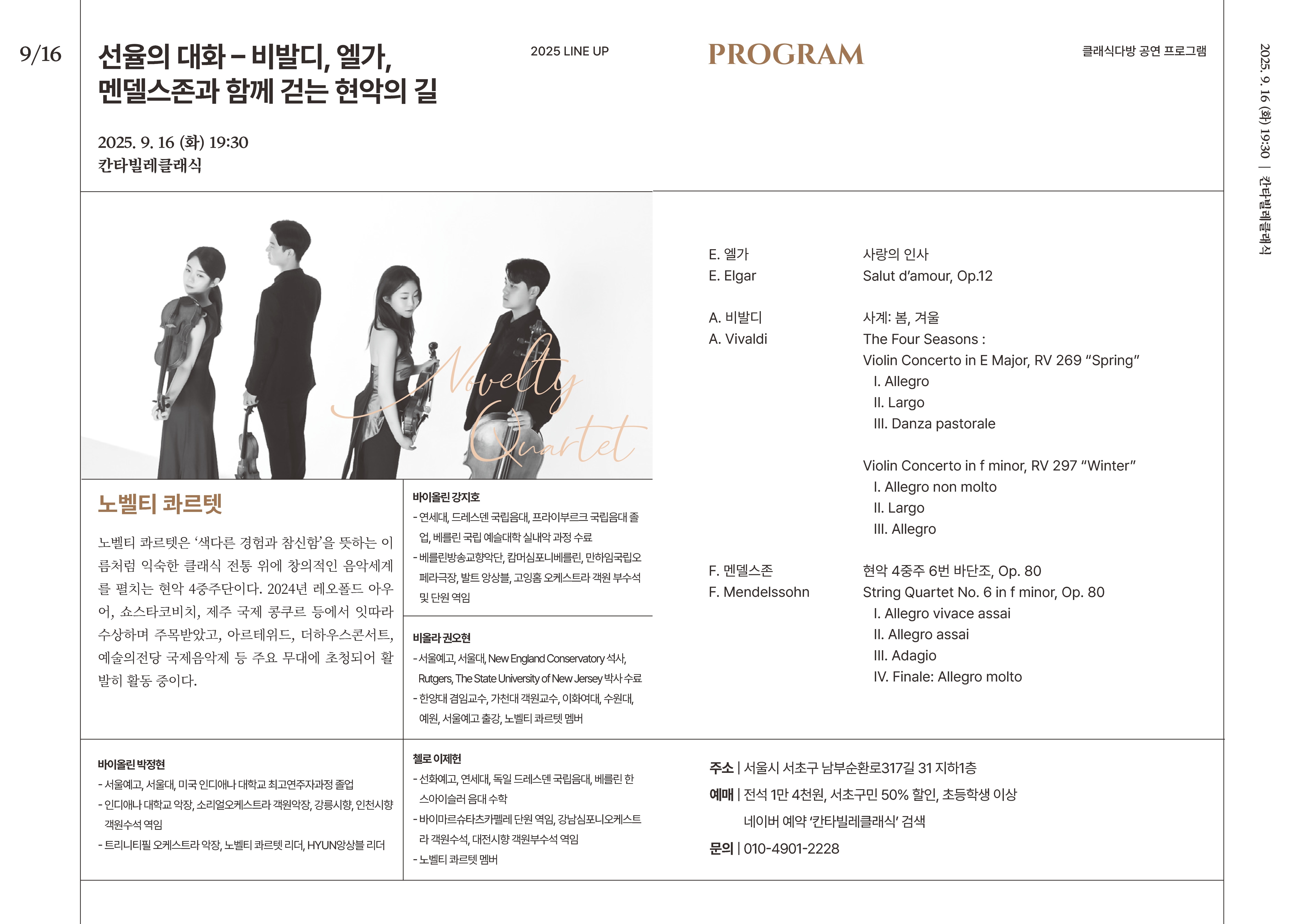 [2025 클래식다방 - 칸타빌레클래식] 선율의 대화 - 비발디, 엘가, 멘델스존과 함께 걷는 현악의 길