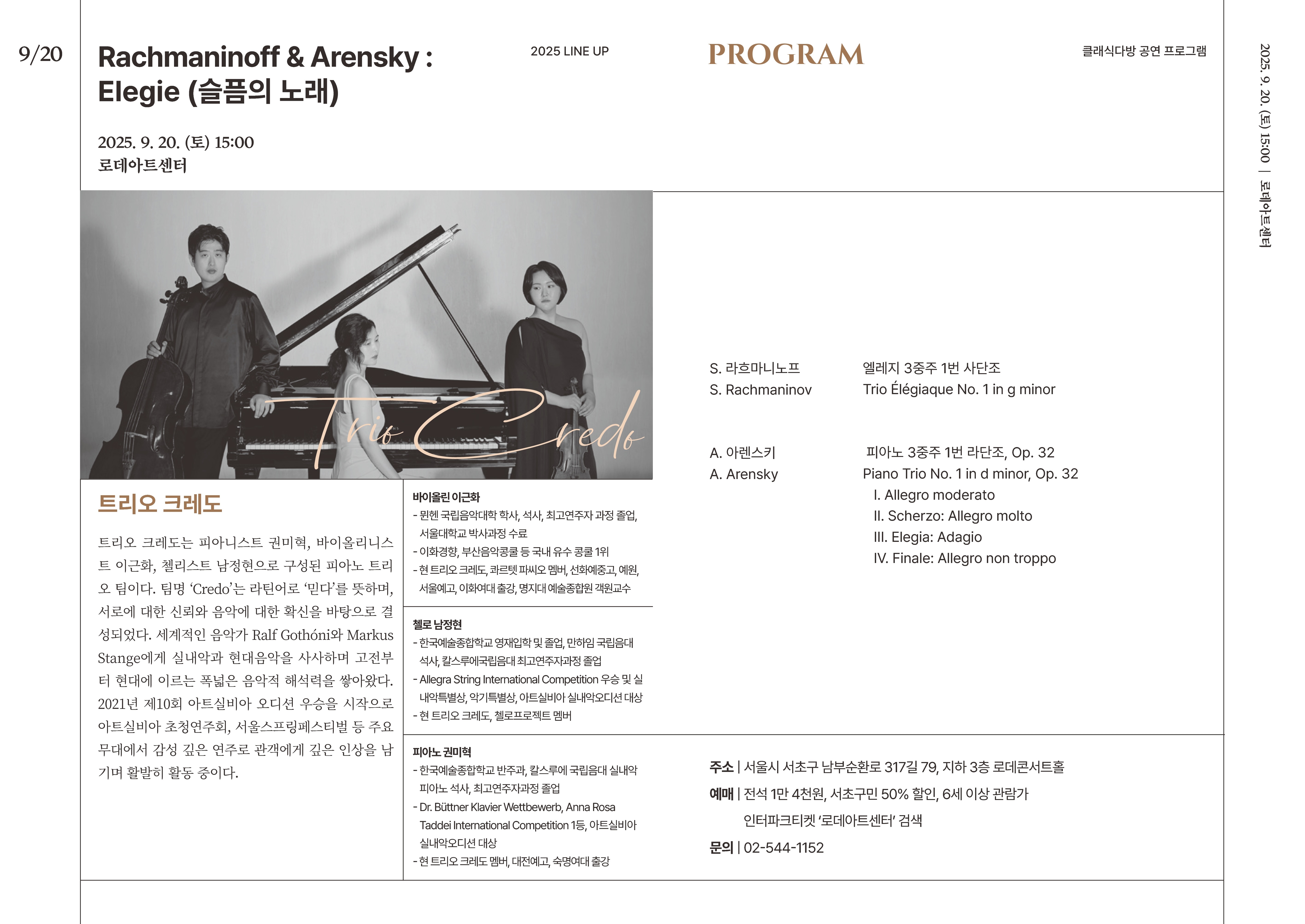 [2025 클래식다방 - 로데아트센터] Rachmaninoff & Arensky (슬픔의 노래)