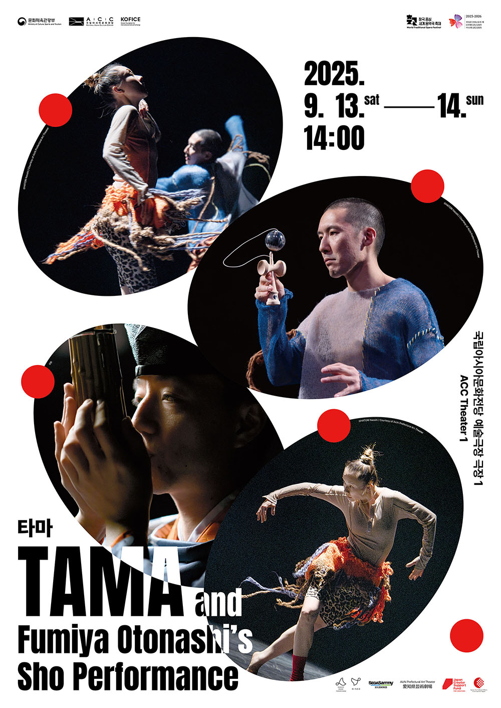 일본 예술 위원회(Japan Art Council)의 지원으로 추진되는 국제 무용 프로젝트 ‘Wings‘의 공연으로 ’타마(TAMA Fumiya Otonashi’s sho Perfmance)‘을 소개합니다. 타마(TAMA Fumiya Otonashi’s sho Perfmance) TAMA(타마) – 자신과 마주하는 의식 ‘공’을 의미하는 일본어 ‘타마’에서 영감을 받아, 영혼과 정신을 의미하기도 하는 타마의 개념을 연상시킨다. 연출가 자신에게 켄다마는 의례적인 행위로, 거울을 보는 행위처럼 이를 통해 자신의 신성한 타마, 본질을 이해하려고 노력한다. 반사된 ‘나’를 마주함으로써 거울 속으로 빠져든다. 켄다마의 리듬 속 일본 악기 ‘쇼(Sho)’의 울림 지속되는 BPM 135의 리듬 속에서 일본 생황 쇼의 멜로디는 새롭게 드러나는 장면들을 완성한다. 쇼의 음색은 하늘에서 내려오는 빛이 파동이 되어 들려오는 듯하다. 쇼의 음색에서 느껴지는 빛의 존재는 자신을 비추는 거울을 바라보는 우리의 방식을 바꾼다. 쇼의 울림은 작품 속에 펼쳐지는 장면을 주도적으로 이끌어간다. 일시/장소: 2025.9.13. (토) ~ 14(일) 14:00 / 예술극장 극장1 러닝타임: 60분 대상: 7세 이상 입장 가능(2018년 포함 이전 출생자) 가격: 전석 18,000원 예매: NOL 티켓 바로가기 https://tickets.interpark.com/goods/25012255 *국립아시아문화전당 한일중 음악극 시리즈 패키지 상품 2025-08-29(금) ~ 2025-09-12(금) 패키지는 공연을 예매할 수 있는 온라인 전용 공연예매권을 구매하는 것입니다. 날짜/좌석은 예매권으로 공연 예매시 지정하세요. 구매 전 사용방법과 유효기간을 꼭 확인하세요! 예매: NOL 티켓 바로가기 https://tickets.interpark.com/goods/25012557