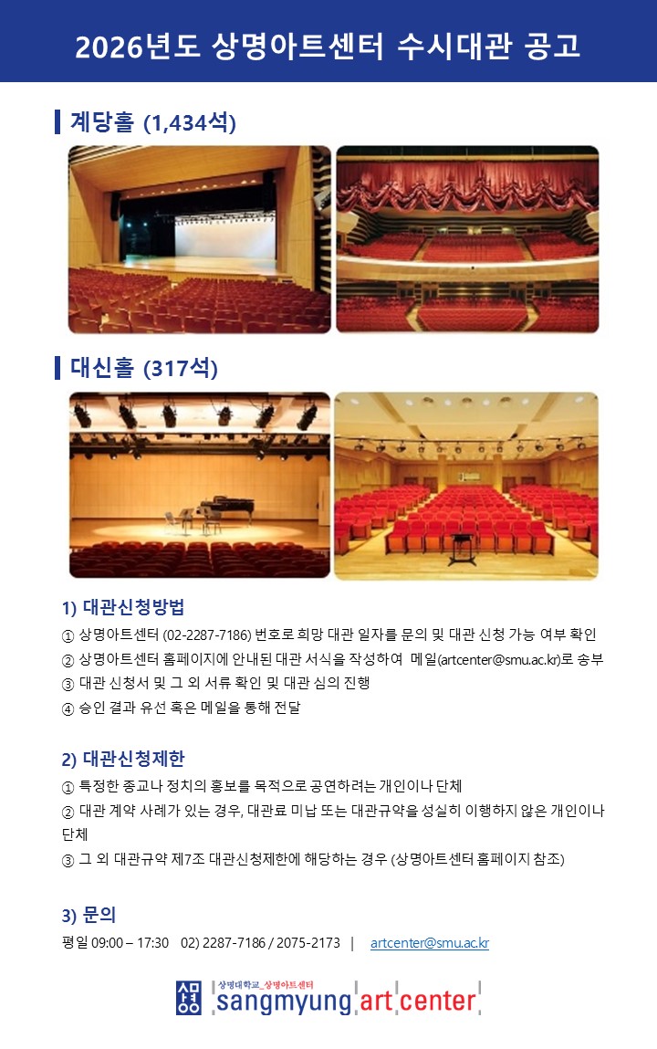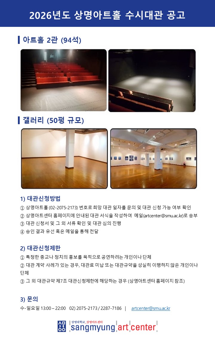 [상명아트센터] 2025-2026년 아트센터 수시대관공고