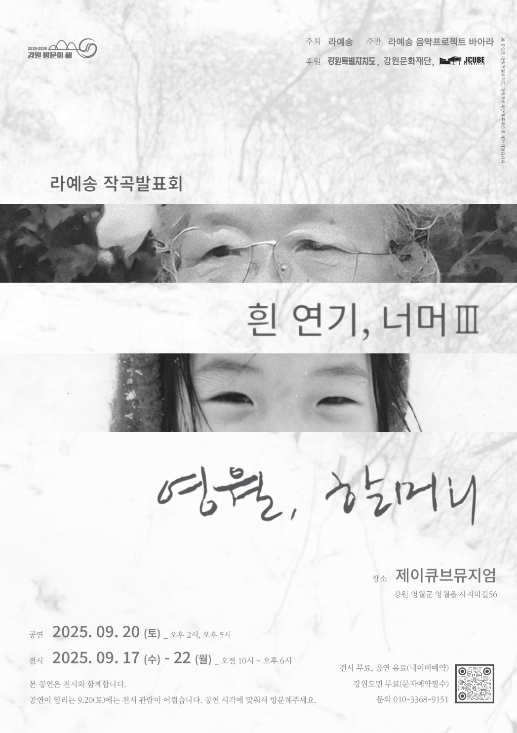 ▶공연 2025.09.20(토) 오후 2시, 오후 5시 60분간 ▶전시 2025.09.17(수) ~ 22(월) 오전 10시 ~ 오후 6시 ▶장소 강원도 영월군 제이큐브뮤지엄