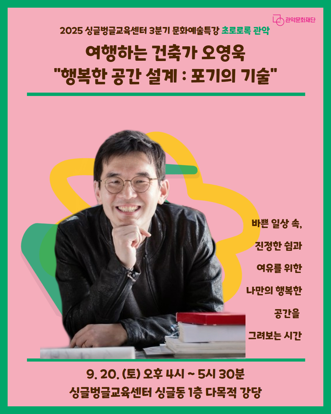 📌 주제 : 여행하는 건축가 오영욱 "행복한 공간 설계 : 포기의 기술"