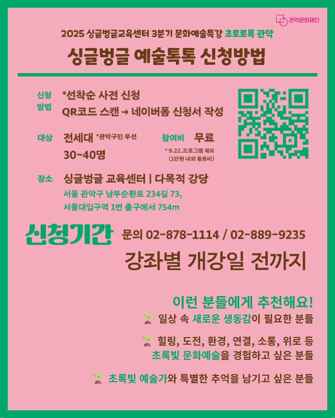 🌿 싱글벙글 예술톡톡 3분기 특강 오영욱 D-3 🌿