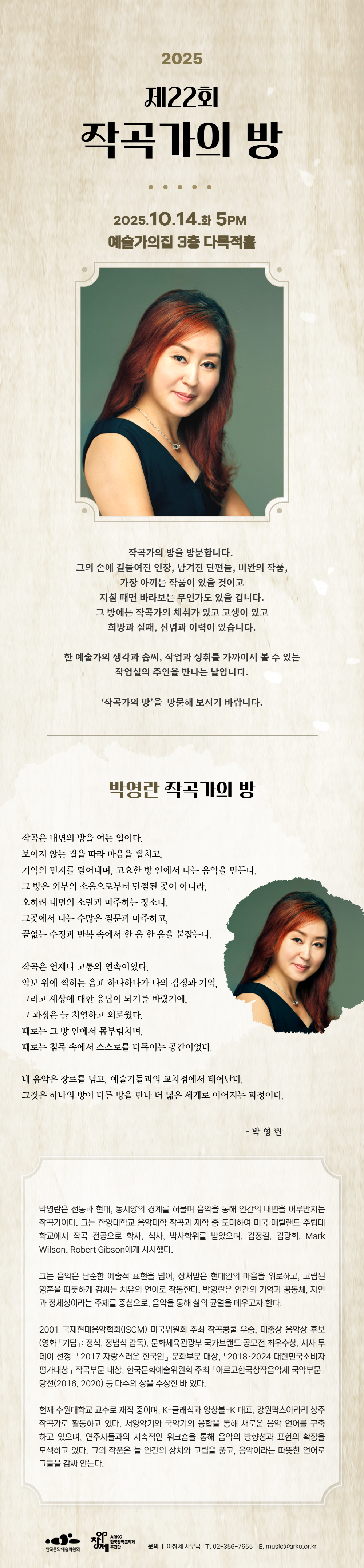 [아창제] 제22회 박영란 작곡가의방으로 초대합니다.