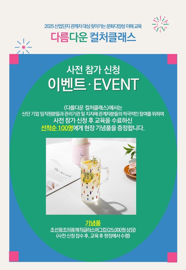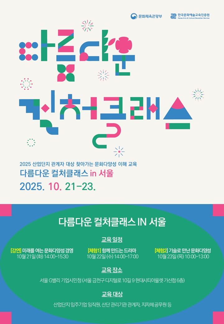[한국문화예술교육진흥원] 산업단지 문화다양성 이해 교육 <다름다운 컬처클래스 in 서울> 참가자 모집