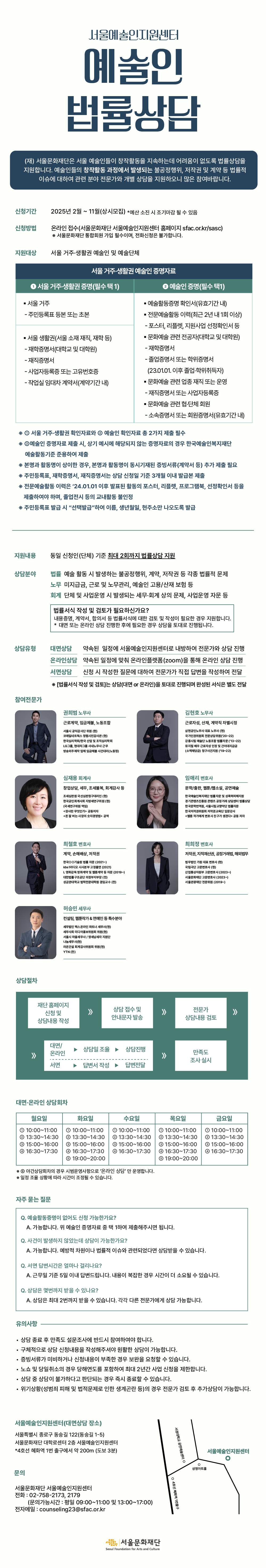 2025 서울문화재단 예술인 법률상담 신청 안내