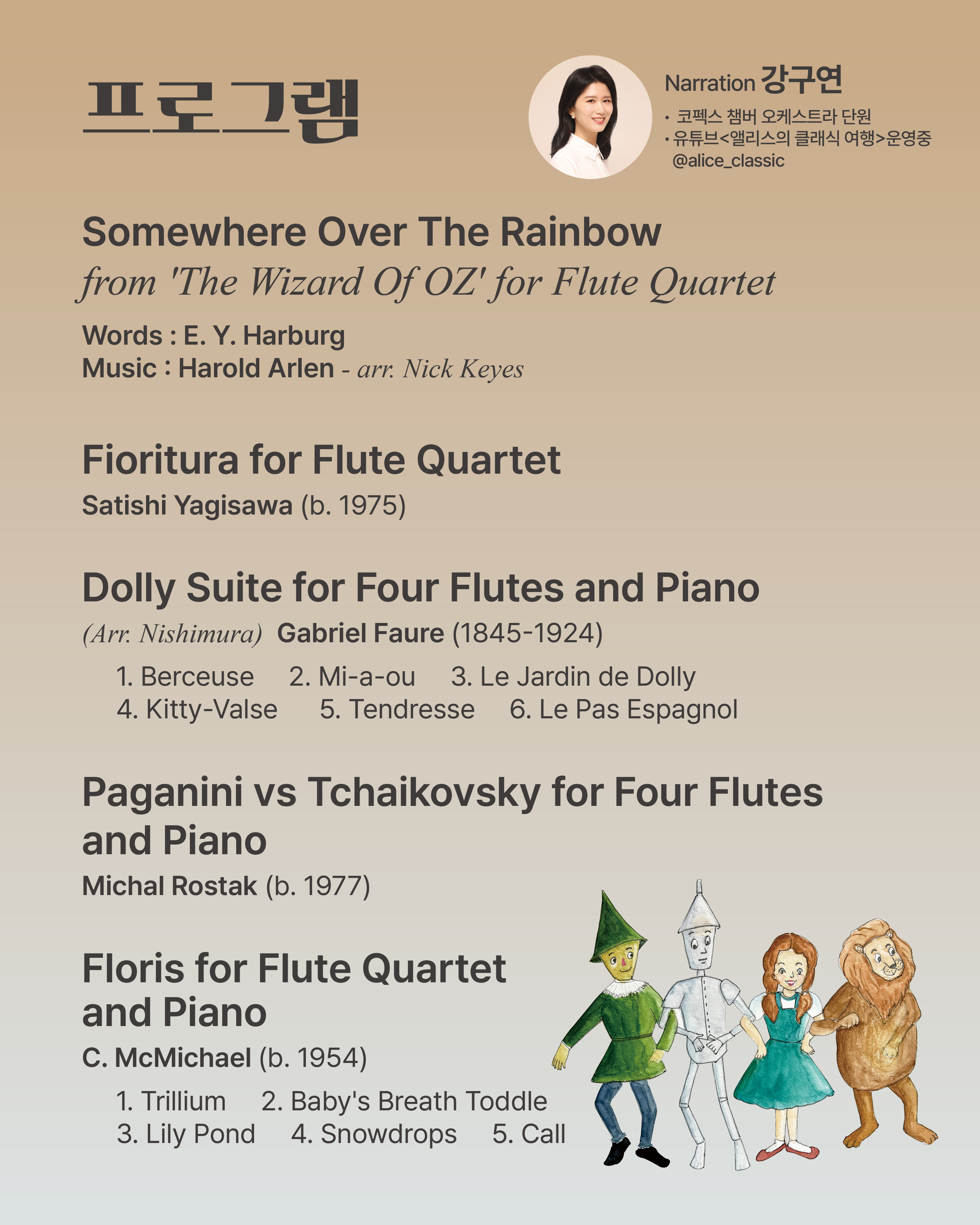 네 대의 플룻과 피아노가 만들어내는 맑은 선율과