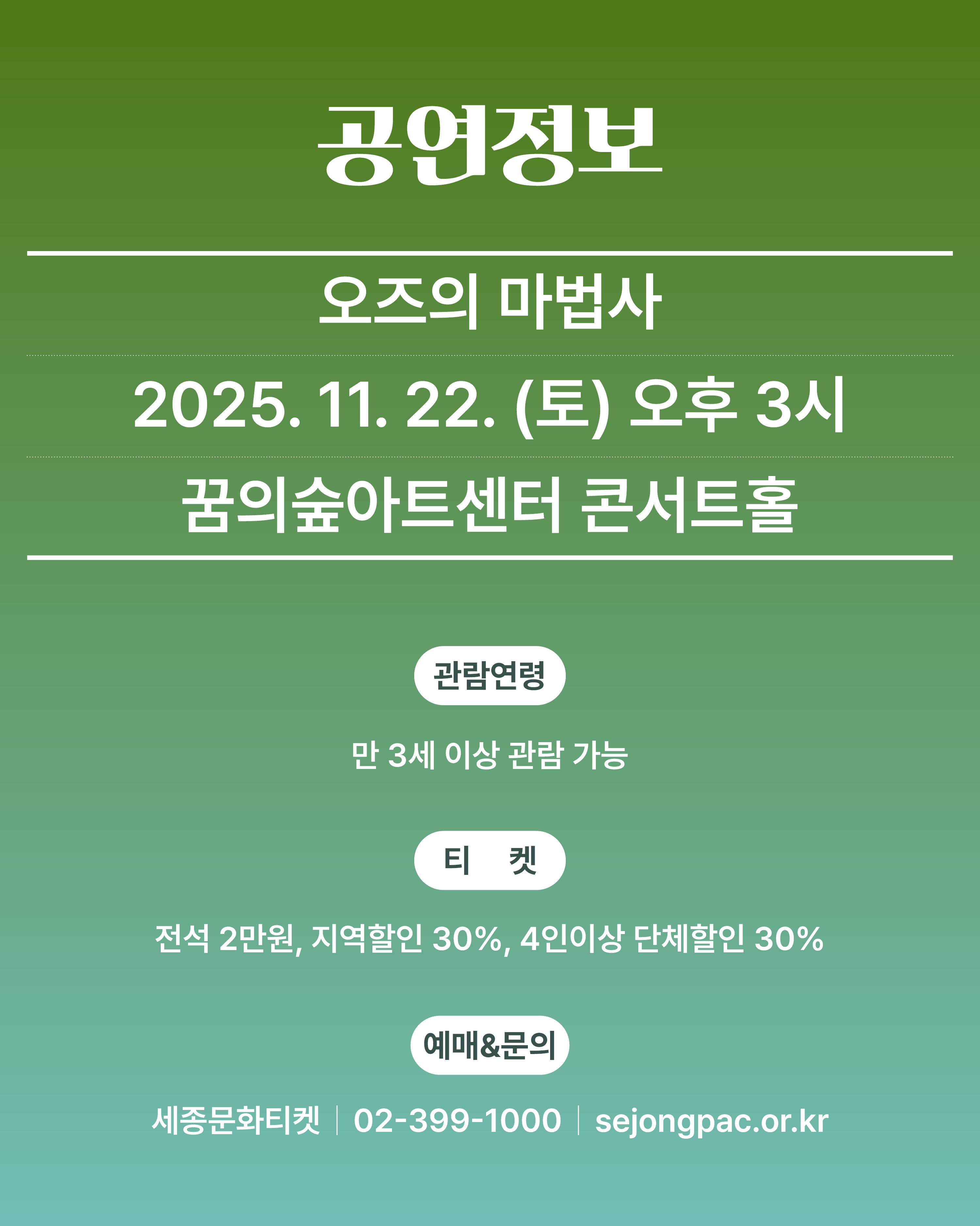 자세한 내용은 세종문화회관 홈페이지를 참고해주세요!