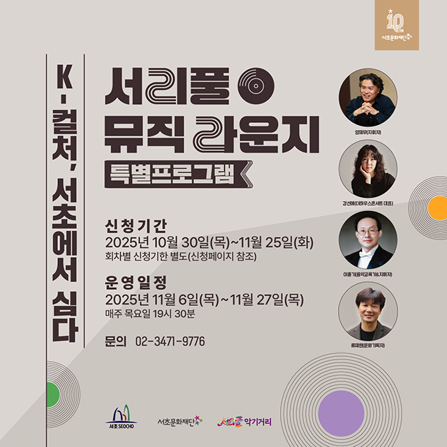 오늘 소개 드릴 행사는 <서리풀 뮤직 라운지> 특별 프로그램 입니다.