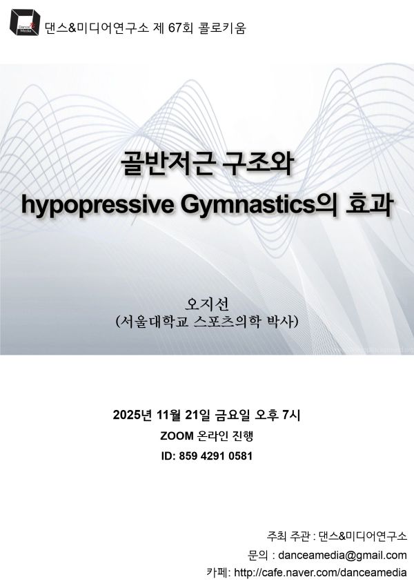 댄스&미디어연구소가 주최·주관하는 제 67회 콜로키움이 개최됩니다.