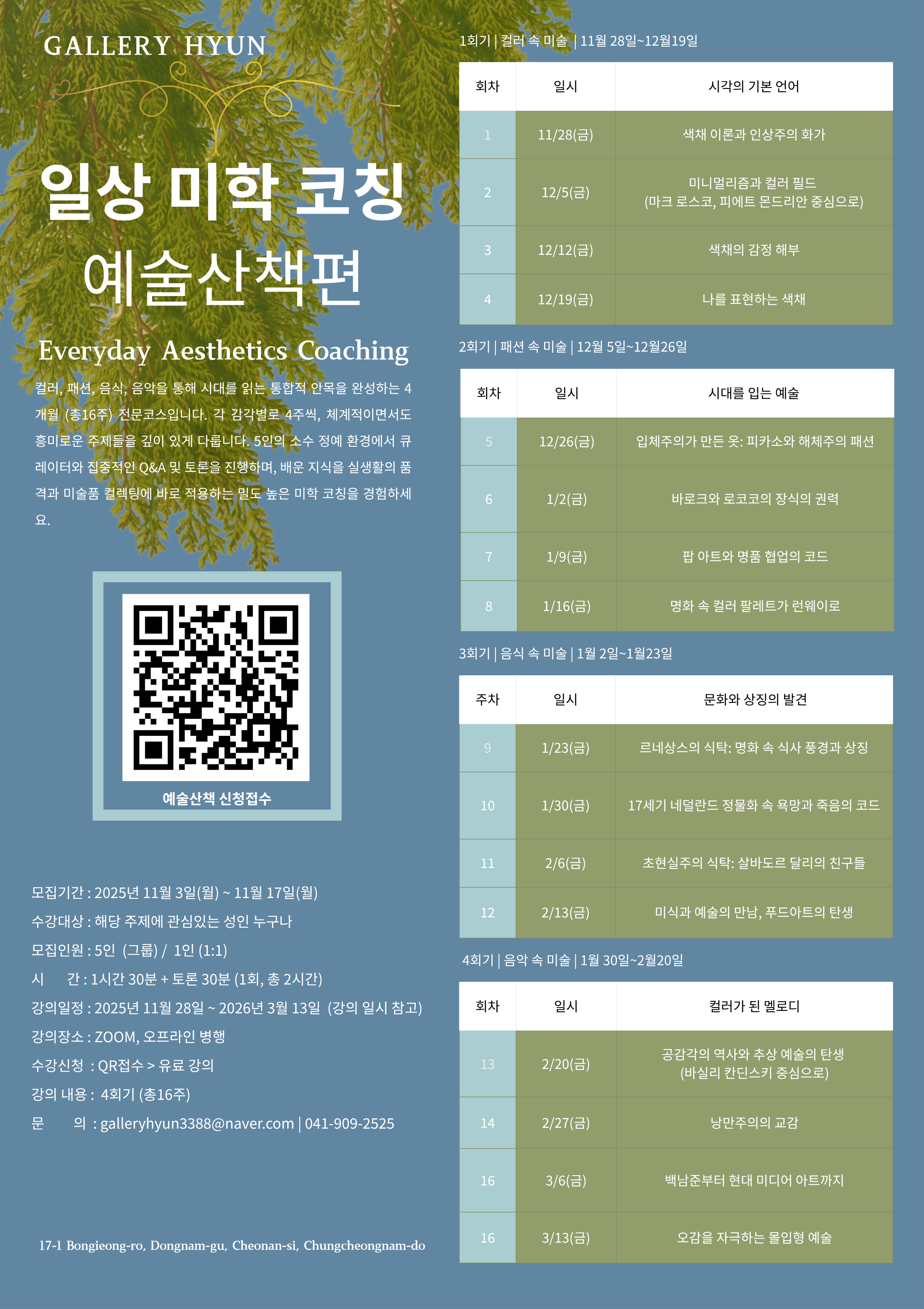 [갤러리현] 예술산책편 수강생 모집 (11/3~11/17 접수마감)
