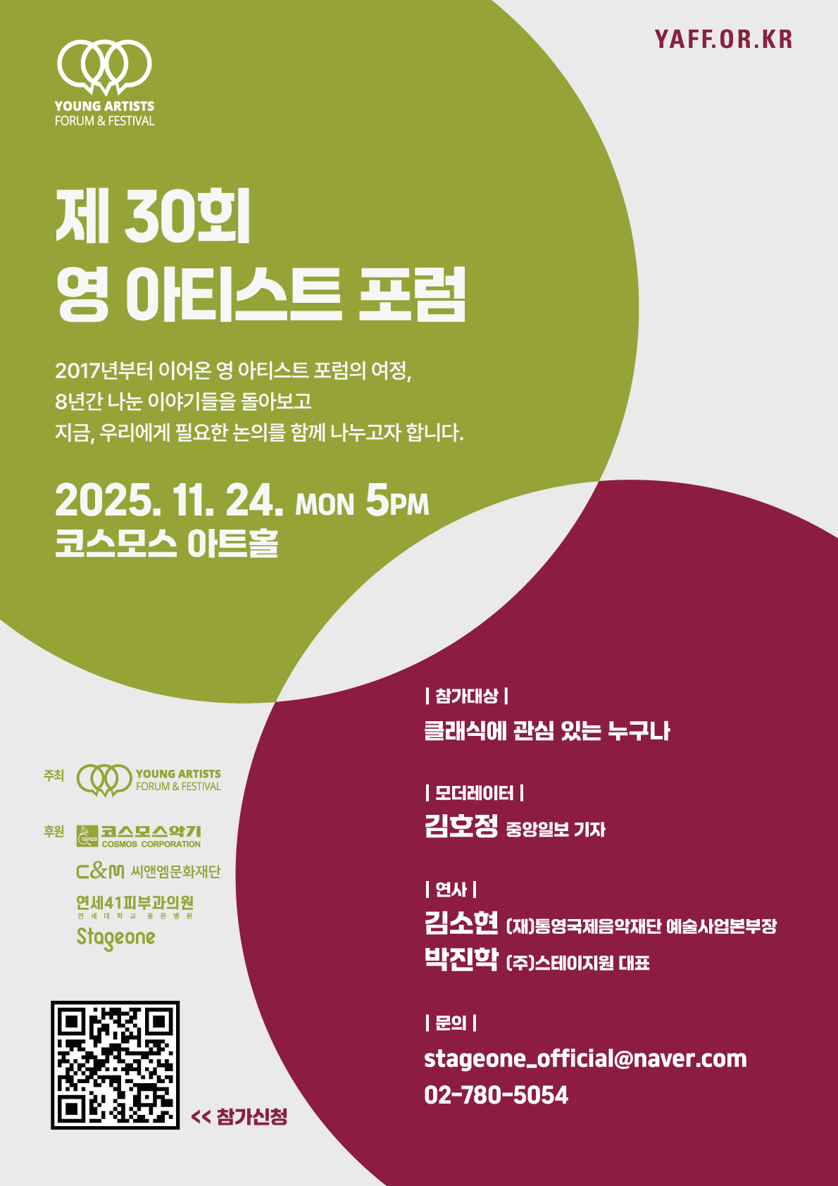 지난 2017년 9월 11일 새로운 출발을 알린 영아티스트포럼이 30번째 포럼으로 돌아옵니다.