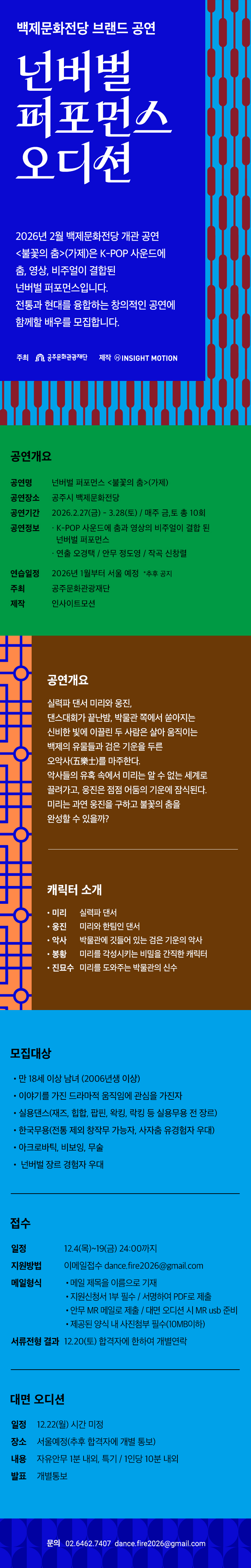 백제문화전당 브랜드공연 넌버벌 퍼포먼스 오디션