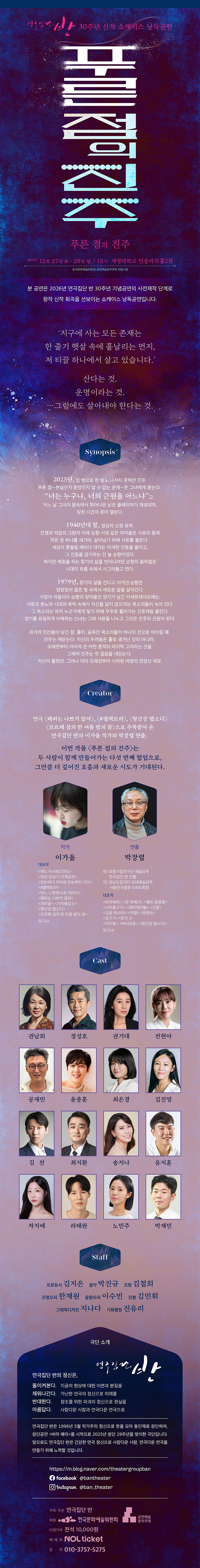 연극집단 반 30주년 신작 쇼케이스 낭독 공연 <푸른 점의 진주>