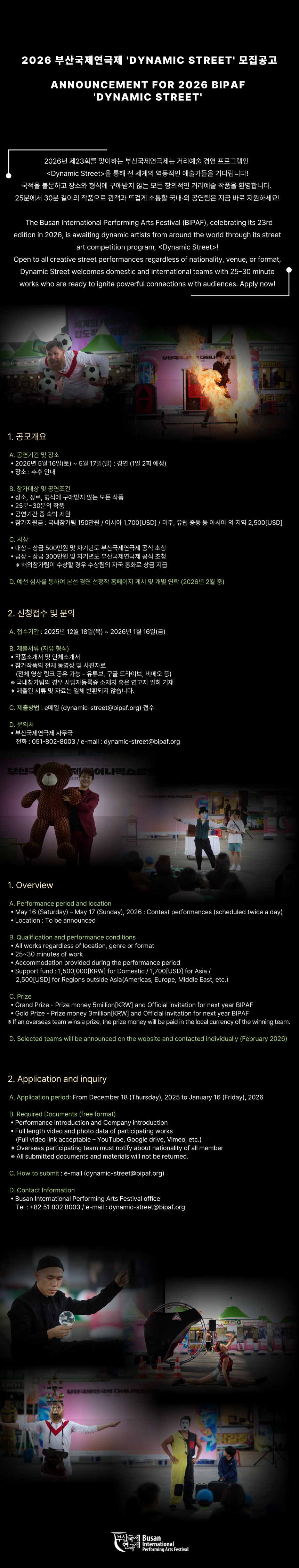 2026년 제23회 부산국제연극제 'Dynamic Street' 공모 안내