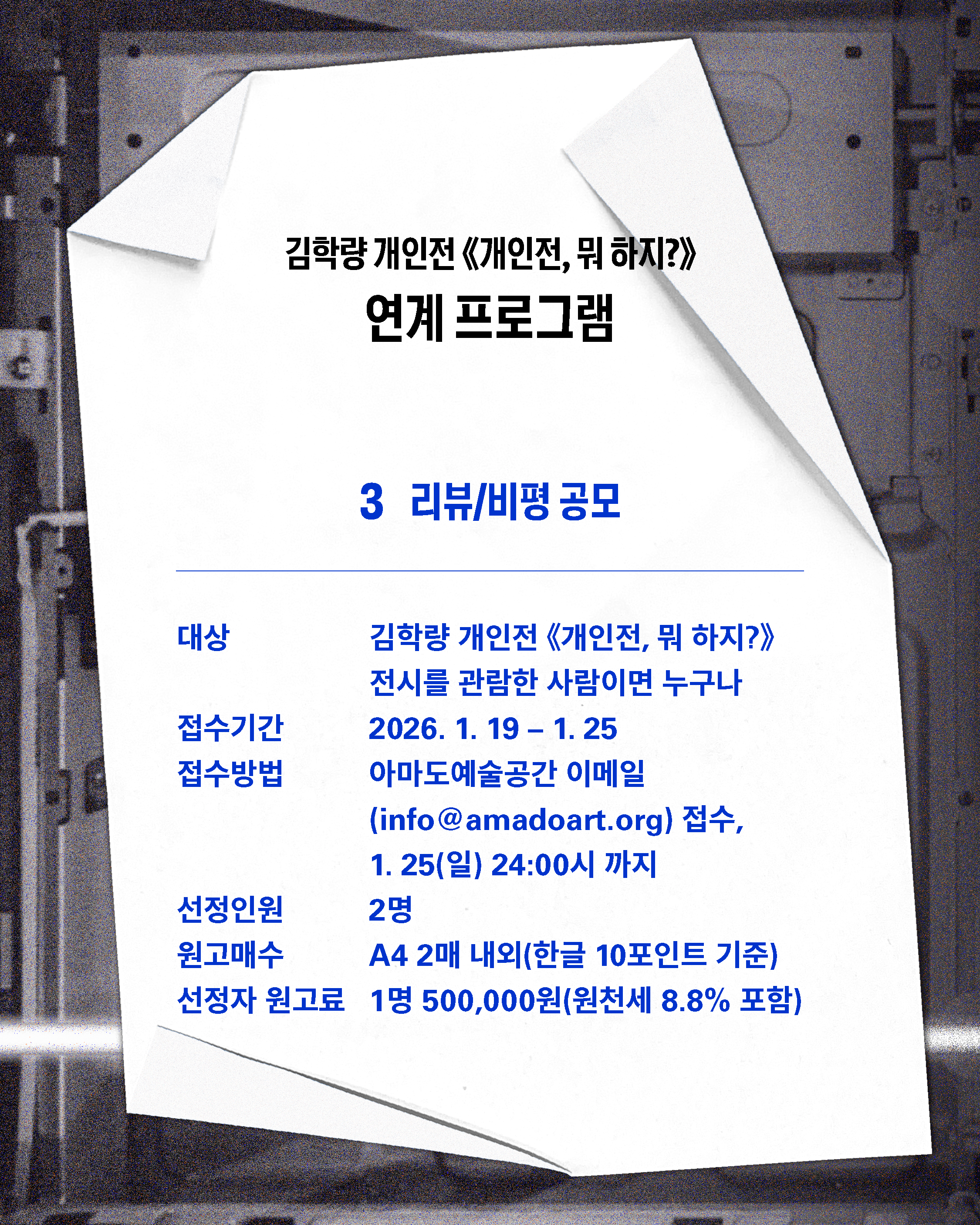 접수방법: 아마도예술공간 이메일(info@amadoart.g)로 접수, 1. 25 (일) 24:00시 까지