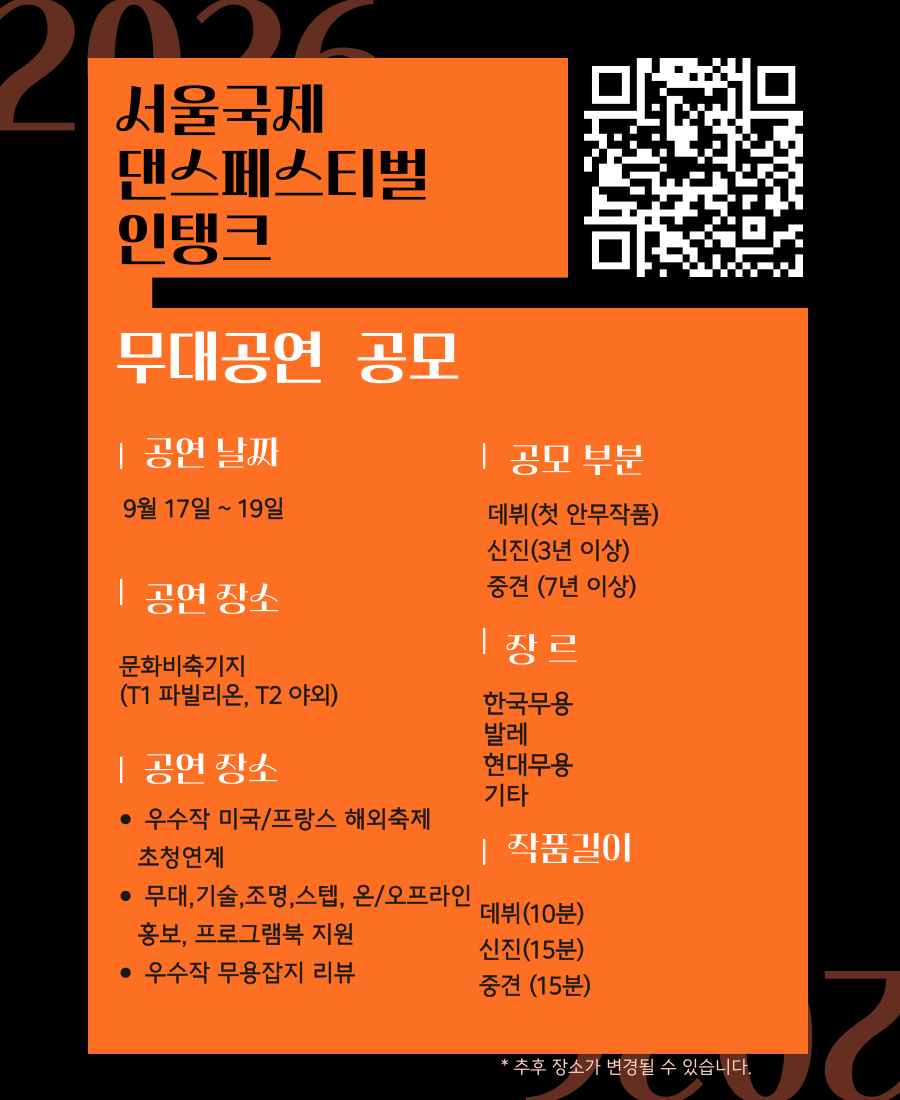 서울국제댄스페스티벌 인 탱크에서만 접수합니다.