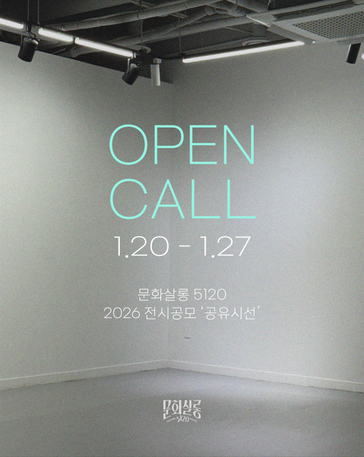 문화살롱 5120은 동시대 예술을 둘러싼 실천과 담론이 교차하는 공공 문화예술공간으로서, 전시를 하나의 결과물이 아닌 실험과 협업의 장으로 고민하고 있습니다. 2026년 공모 '공유시선'부터는 이러한 방향성을 보다 분명히 하기 위해, 기존의 작가 중심 전시 공모를 기획 중심 공모로 개편합니다.