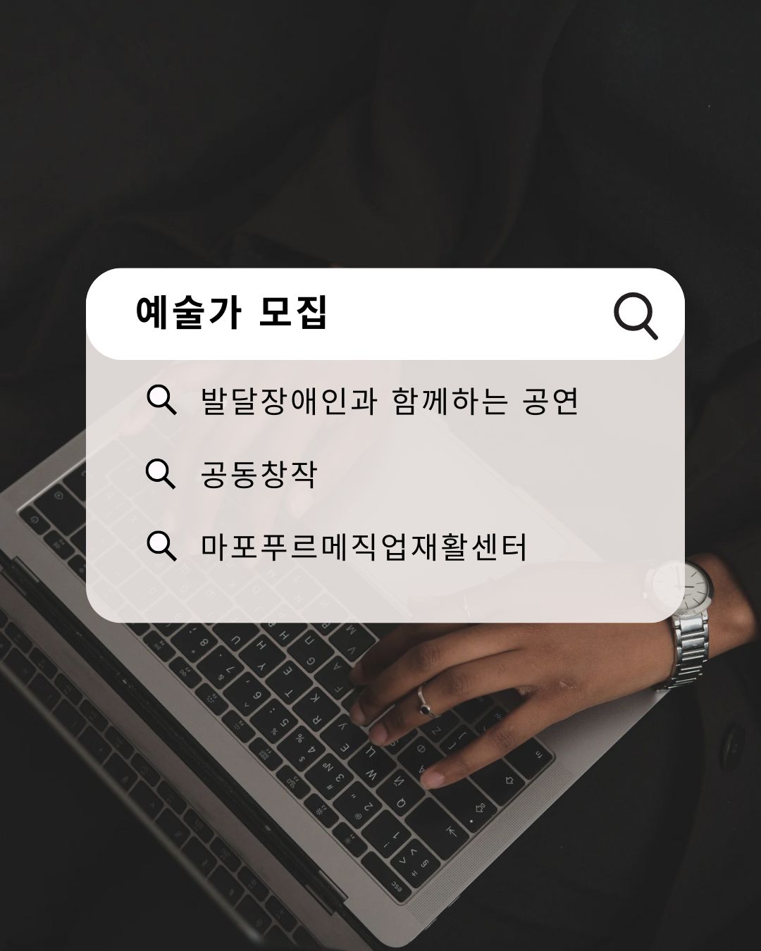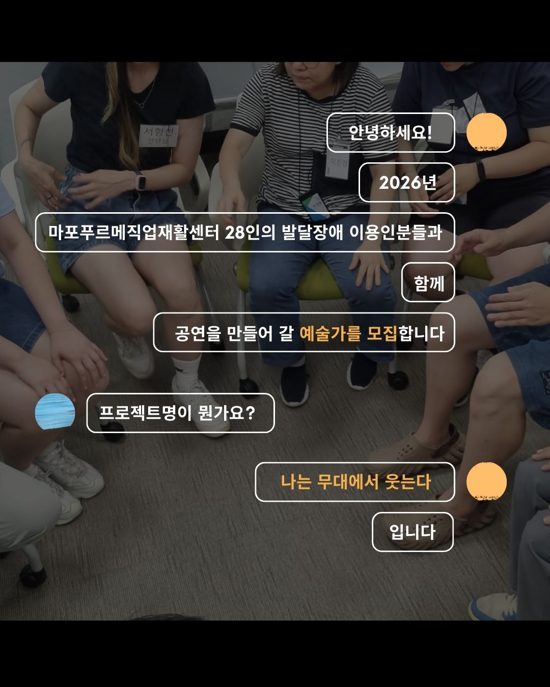 2026년, 마포푸르메직업재활센터 28인의 발달장애 이용인과 함께 공연을 공동으로 만들어 갈 예술가를 모집합니다.