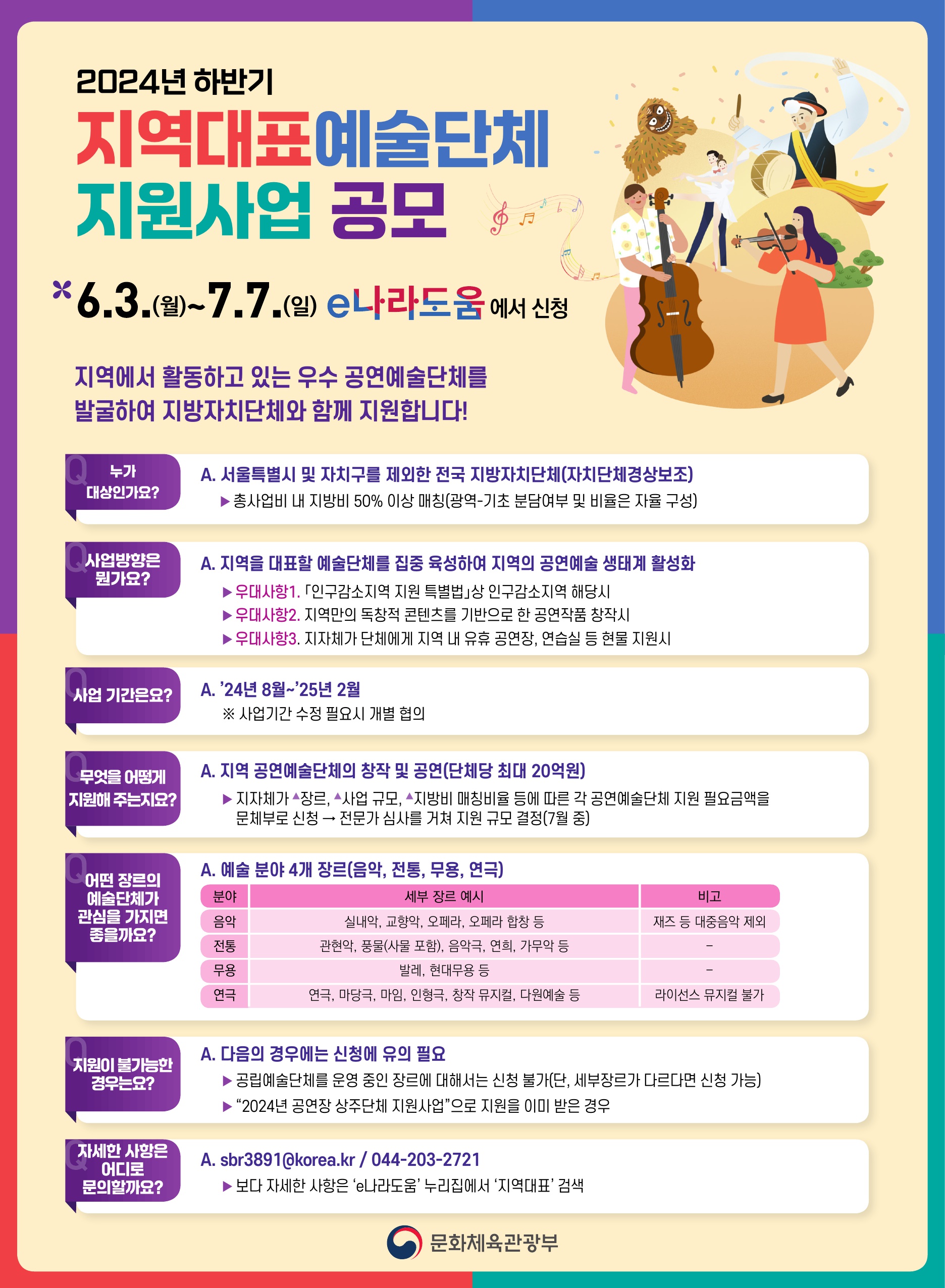 2024년 지역 대표예술단체 지원 추가공모(~7.7.(일) 23:59)