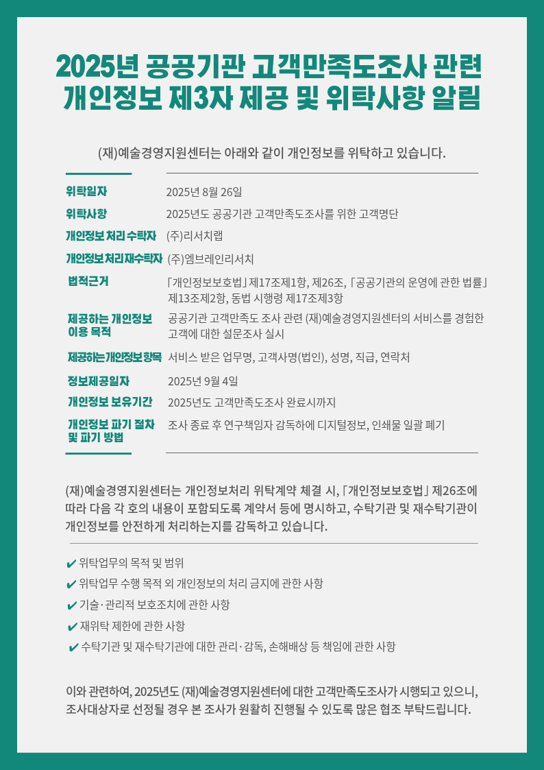 2025년 공공기관 고객만족도조사 관련 개인정보 제3자 제공 및 위탁사항 알림
