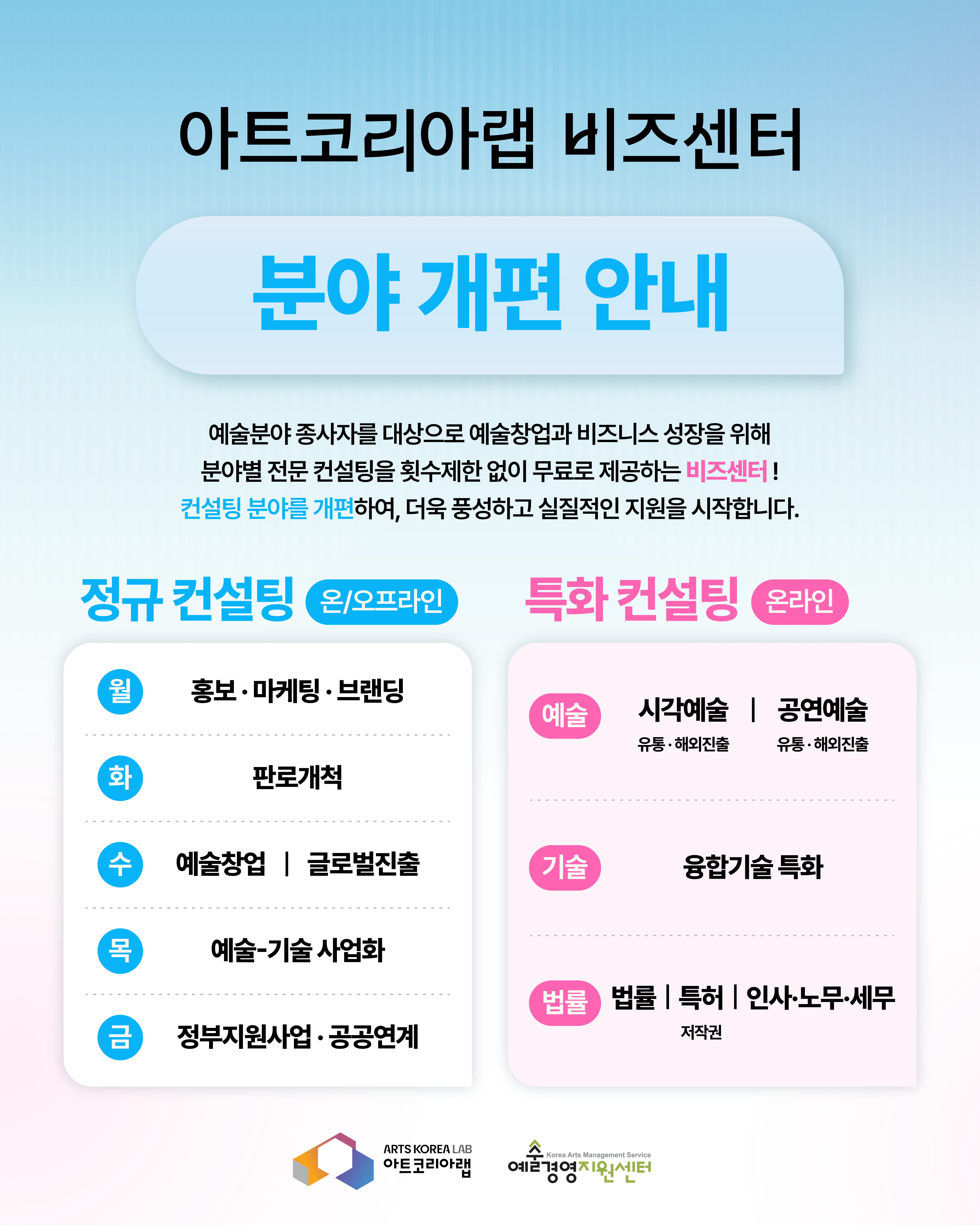 [아트코리아랩 비즈센터 - 컨설팅 분야 개편 안내]