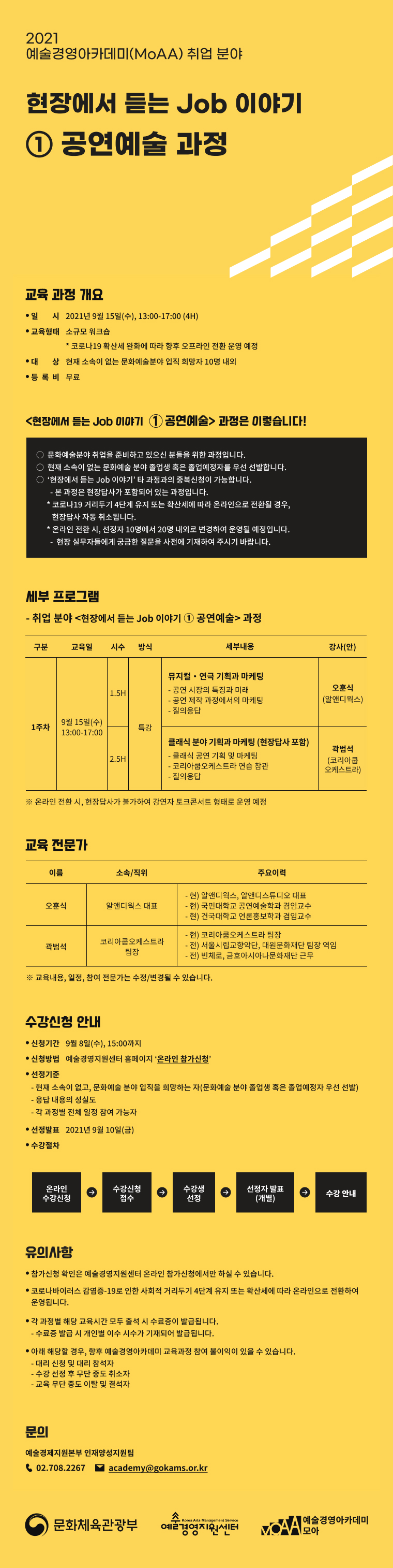 2021 예술경영아카데미(MoAA) 취업 분야<현장에서 듣는 Job 이야기 ① 공연예술 과정> 수강 신청
