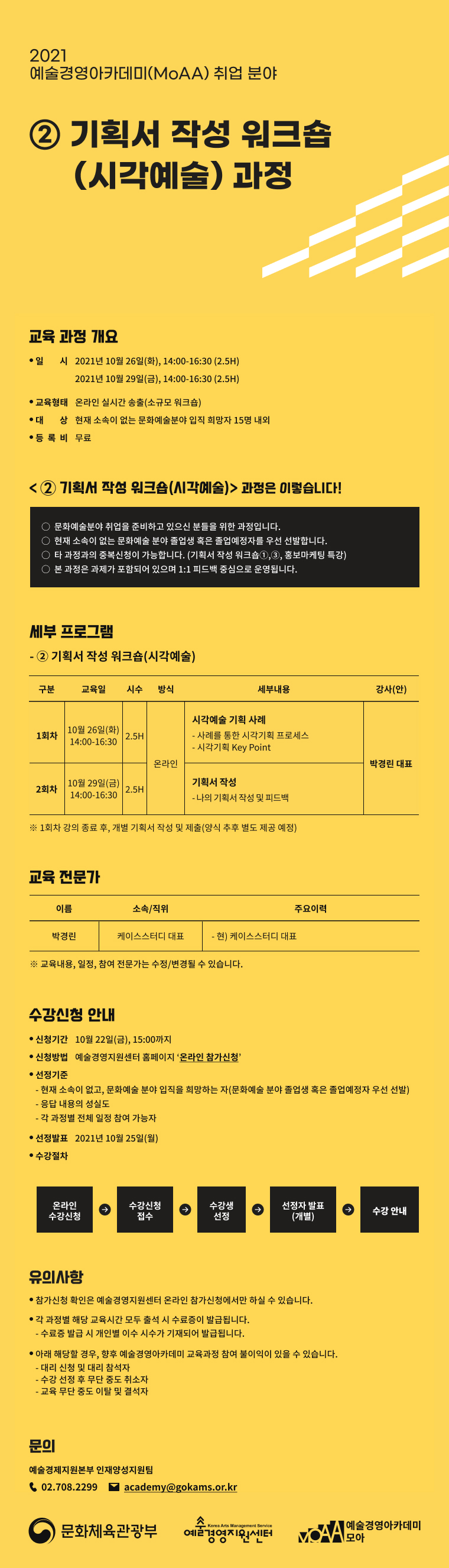 2021 예술경영아카데미(MoAA) 취업 분야<②기획서 작성 워크숍 (시각예술) 과정> 수강 신청