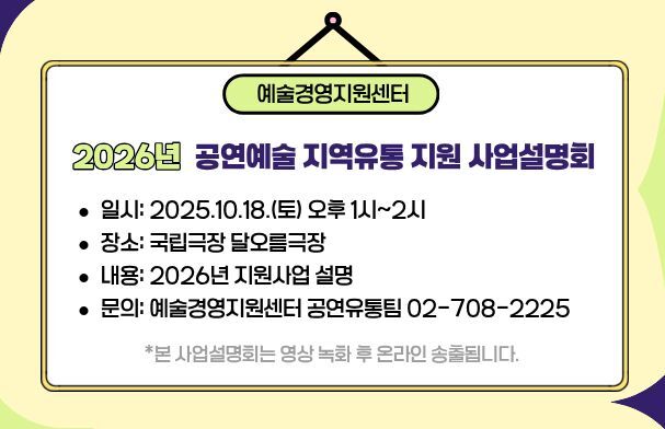 문의 (재)예술경영지원센터 공연예술본부 공연유통팀 promokams@gokams.or.kr