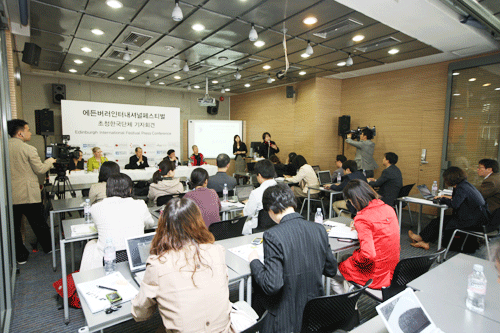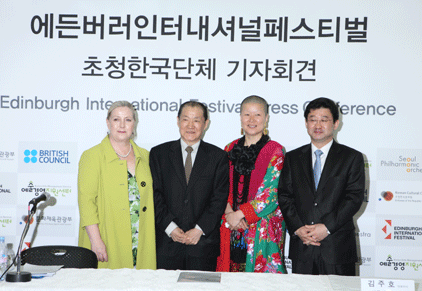 Press Conference of Edinburgh International Festival 2011 was held on April 20(Wed.) at British Council Korea, in the presence of Jackie Westbrook, Marketing Director of Edinburgh Int'l Festival; Eun me Ahn, Artistic Director of Eun-Me Ahn Company; Joo ho Kim, CEO of the Seoul Philharmonic Orchestra; and Tae-Suk Oh, Artistic Director of Mokwha Repertory Company.