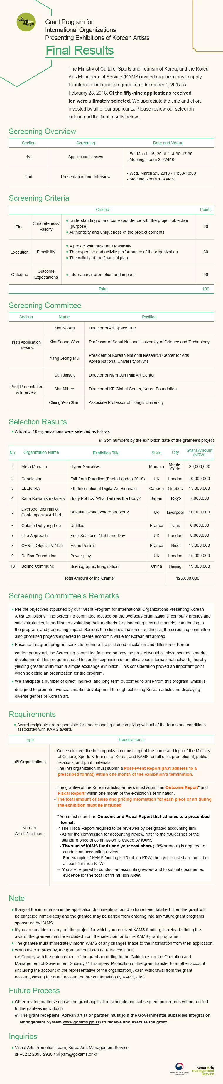 [Results Announcement] Final: Fund for Korean Art Abroad 2018 - 1st term