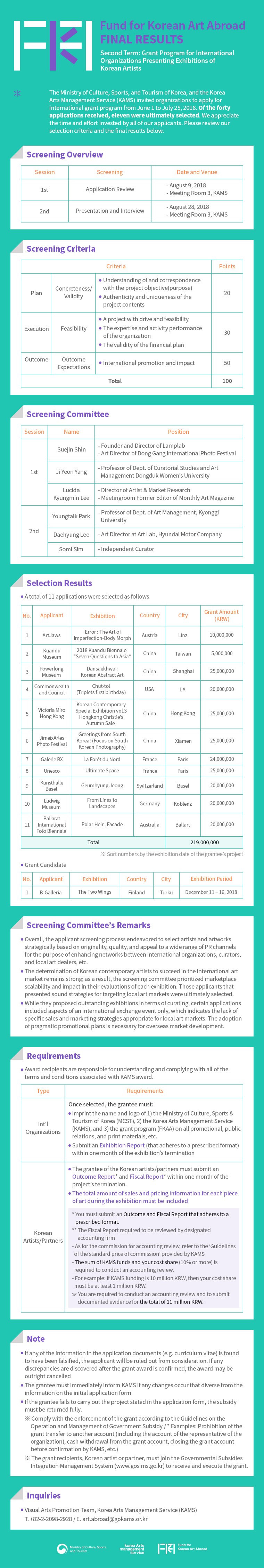 [Results Announcement] Final: Fund for Korean Art Abroad 2018 - 2nd term