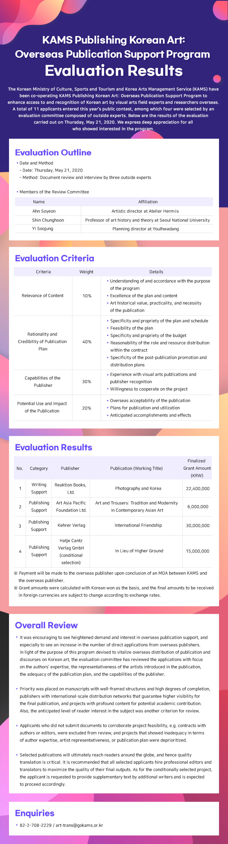 [Results Announcement] KAMS Publishing Korean Art: Overseas Publication Support Program