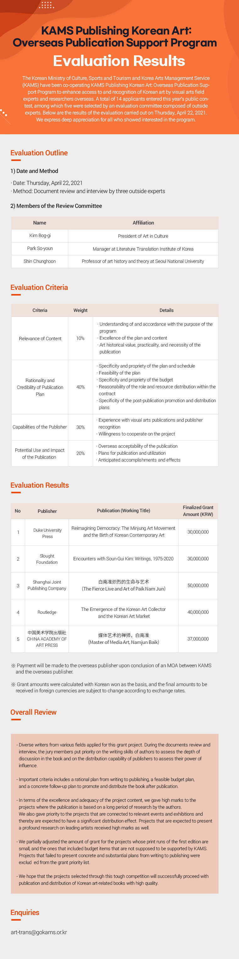 [Results Announcement] 2021 KAMS Publishing Korean Art: Overseas Publication Support Program