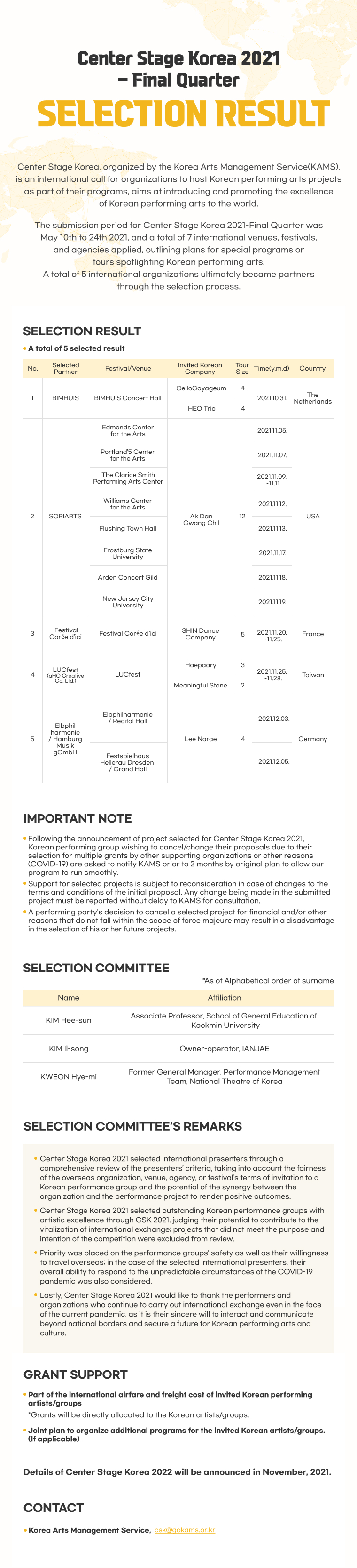 [Selection Result] Center Stage Korea 2021-The Final Quarter