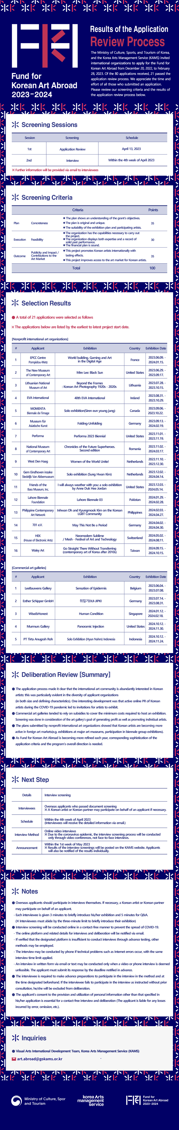 [Results Announcement] Application Review: Fund for Korean Art Abroad 2023-2024