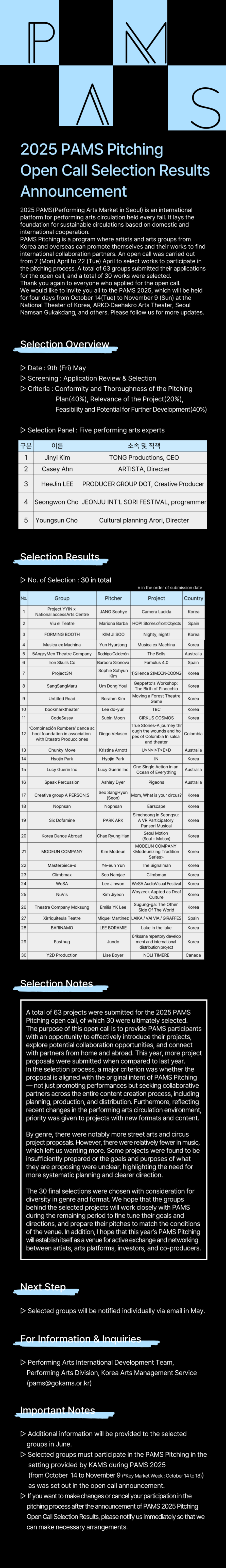 [Results Announcement] 2025 PAMS Pitching Open Call Selection Results Announcement